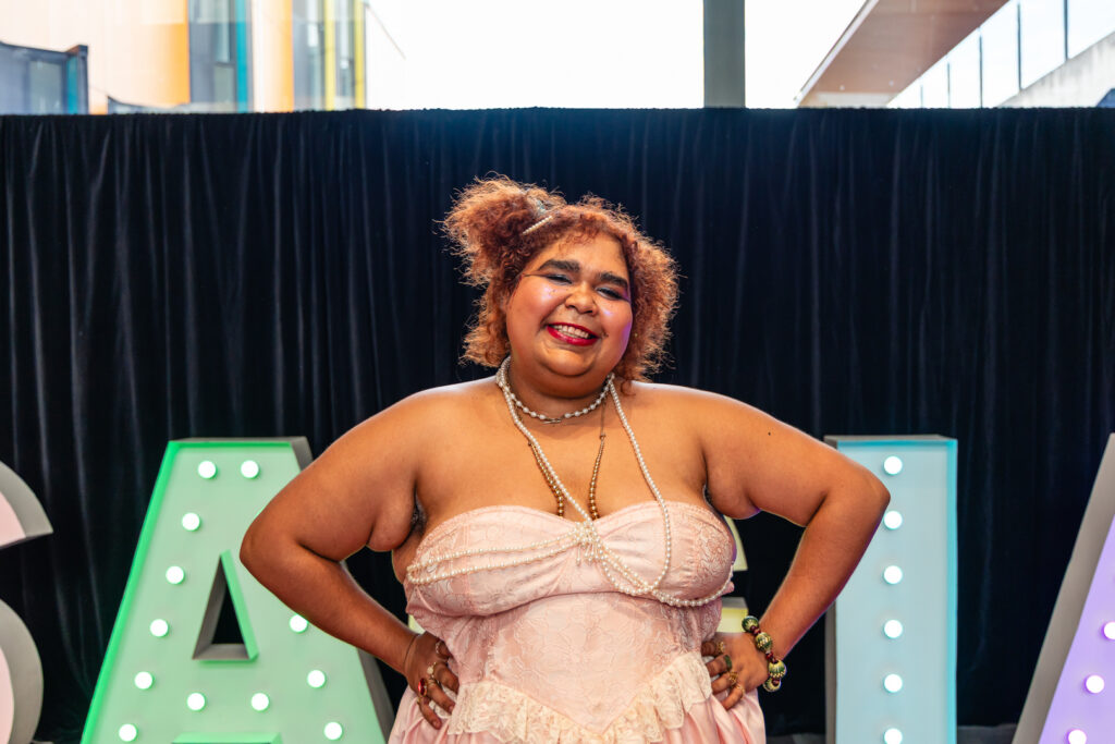 Jakirah Telfer at the opening of SAGE 2026. Photo: Naomi Jellicoe